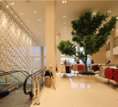 时尚的生活方式空间,为该地区带来奢华的零售体验。建筑的华丽外观是由优雅的正面带来的。宽敞的内部突出了温暖的灯光。